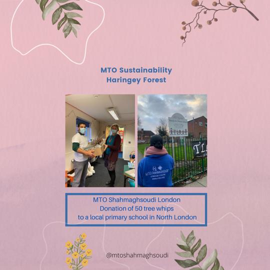Haringey Forest is dedicated in promoting and distributing tree whips across our borough. This project is all about raising awareness of need for action to combat the climate crisis we all are faced with. MTO Shahmaghsoudi , School of Islamic Sufism in Crouch End collaborated with Mike Jenn from Kentish Town Transition Network in distributing tree whips in April 2021. This was the start of our “Haringey Forest” project which allows for great community engagement and impactful discussions across all ages.